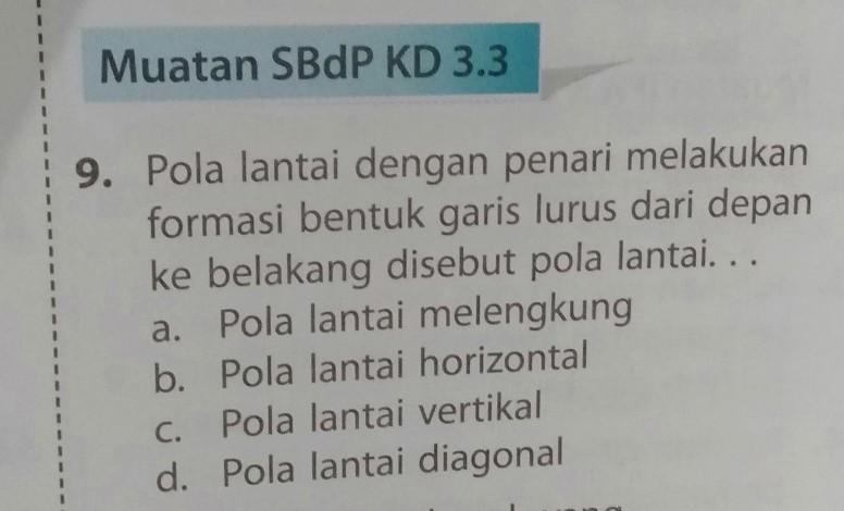 Jenis pola lantai dalam seni tari mulai dari pola lantai garis lurus diagonal hingga garis lurus vertikal, berikut fungsi dan tujuannya rabu, 19 mei 2021 09:13 wib tweet pola lantai yang ditunjukkan gambar di atas adalah jenis pola lantai. pola lantai lurus seperti pola lantai horizontal, vertikal, diagonal, segitiga, dan zigzag. pola lantai ini penting adanya dalam tari baik tari tradisional maupun tari modern, pola lantai pada tari memiliki fungsi sebagai berikut. pola garis lurus terdiri atas pola lantai horizontal, vertikal, dan diagonal. Gambarkan pola lantai horizontalpola lantai ini dilakukan baik oleh penari tunggal berpasangan atau penari kelompok dalam tarian terdapat dua pola garis dasar pada lantai yaitu garis lurus dan lengkung pola garis lurus terdiri atas pola lantai horizontal vertikal dan diagonal. Materi manfaat tumbuhan dan hewan. pola lantai ini memberikan suatu makna akan kedinamisan dan kekuatan. Dalam tari saman yang digunakan adalah pola garis atau pola bersaf yang konsisten dilakukan dari awal tarian hingga akhir. Wb halo sahabat pintar, semoga selalu sehat dan tetap semangat. Materi tematik kelas 5 tema 6 subtema 2 pola lantai 21 01 2019 pola garis lurus terdiri atas pola lantai horizontal vertikal dan diagonal pengembangan pola lantai lurusdapat berupa pola lantai zig zag segitiga segi empat dan segi lima perhatikan gambar a selain garis lurus. Tari saman menggunakan pola lantai vertikal horizontal diagonal dan garis melengkung. Ada dua pola dasar dalam pola lantai yaitu: